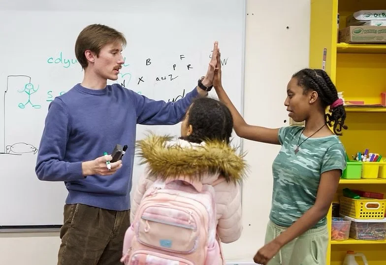 “I really enjoy kids and teaching and connecting with whatever they’re doing that day and whatever emotional state they’re in,” he explains. Cooper draws on his previous job experience as a math tutor to support Cambridge students like Yohana. He says he and Yohana are a good match because “she's often willing to show her silly side" and he enjoys being silly, too.